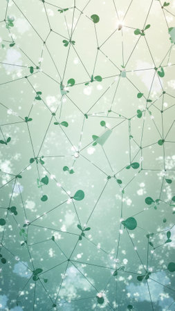 Abstract geometric network with leaf patterns and soft light. That the image is generated using AI.