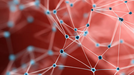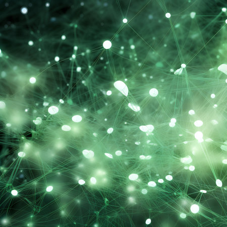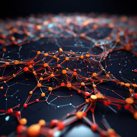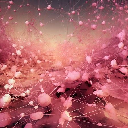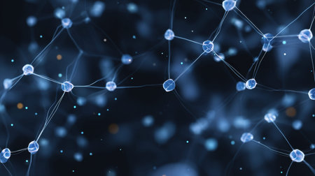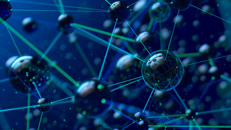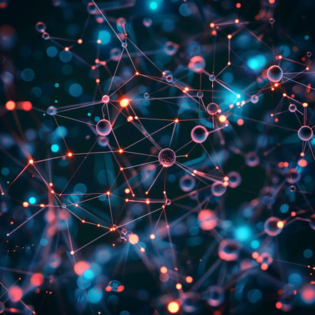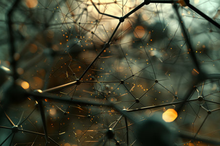 This abstract image showcases a molecular structure with glowing nodes and connections against a dark background, illustrating complex scientific concepts and technology.