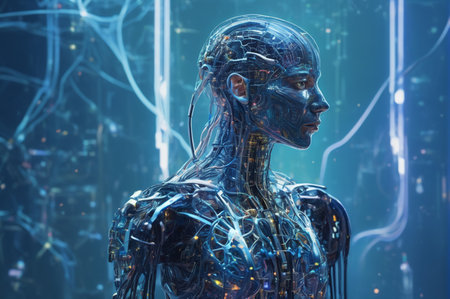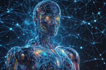 Futuristic Robot with Glowing Circuitry in Network. Generative AI.