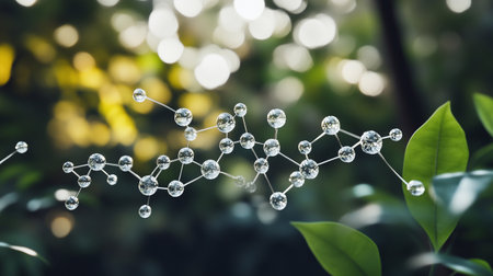 Cosmetics background, pastel Molecules, science background, lab background, herbal leaves, beauty products, bubbles background,Abstract Chemistry generative ai illustration