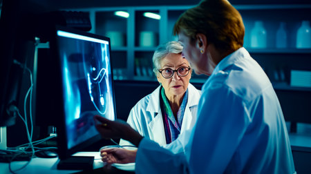 Senior female scientist examining medical scans