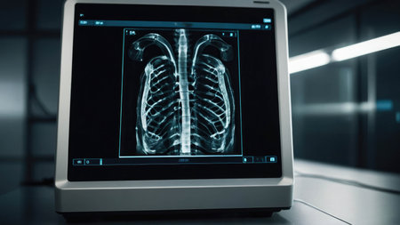 Details with a thoracic X-Ray on a computer monitor inside a clinic