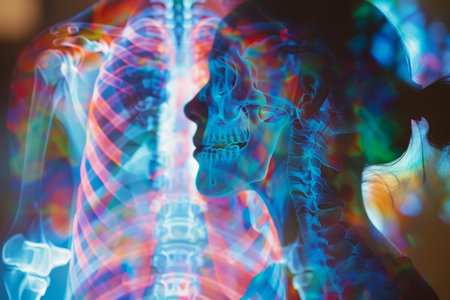 Vivid AI-generated X-ray visuals on a lightbox showcasing intricate human anatomy details.