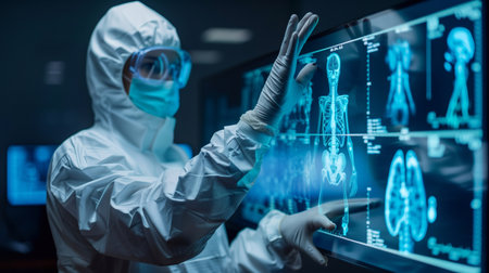 perspective vision and artificial intelligence in healthcare, showing the analysis of X-rays or diagnosis of diseases with unprecedented accuracy