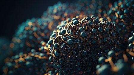 Vibrant molecular structures display intricate connections showcasing the beauty of chemistry at a microscopic level with rich colors and detail.