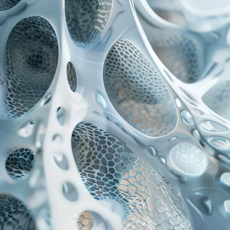 Close-up view of intricate, porous structure resembling a natural pattern observed in microscopic dimensions