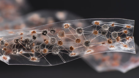 Close-up highlights intricate networks and textures in a transparent film, showcasing details