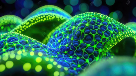 Detailed examination of a cellular network reveals complex patterns and vibrant colors in a close-up view.