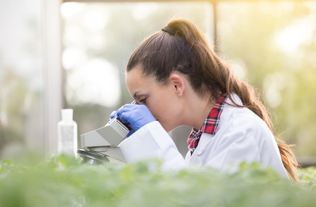 She finds plants the most fascinating to study. a young scientist working with plant samples in a lab.
