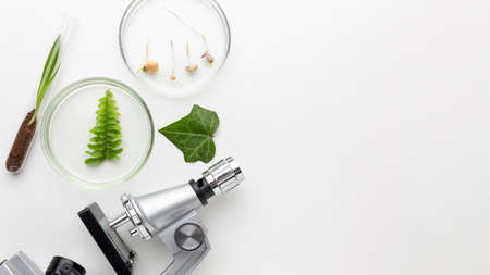 top view petri dish with plant biotechnology laboratory. High resolution photo