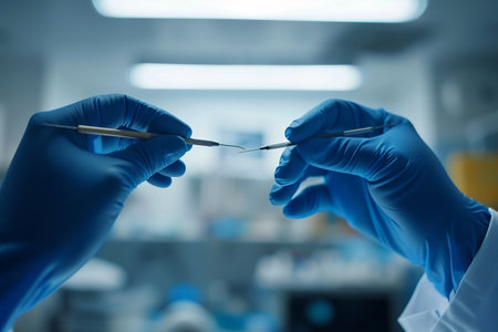 Generative AI Image of Doctor Hands Wearing Gloves While Holding Tweezers