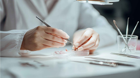 A technician uses precise tools to analyze a sample in a clean laboratory environment. The image captures the intricacies of scientific research and study.