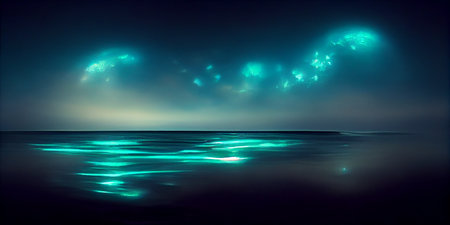 Bio luminescent ocean. Bioluminescent plankton in the sea. Bioluminescence