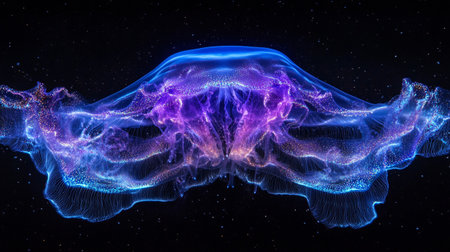 Bioluminescent Jellyfish Underwater with Mysterious Blue Light