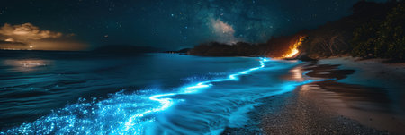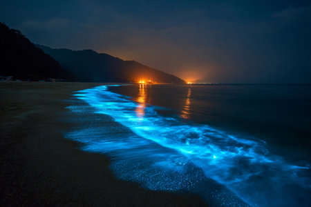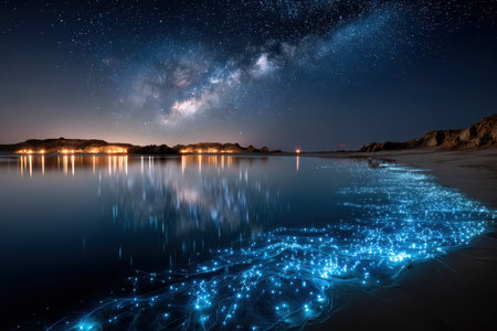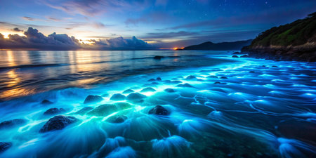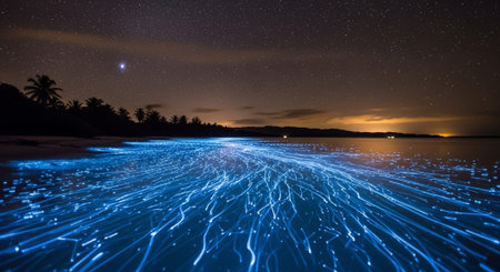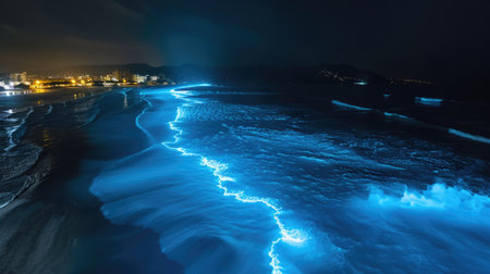 Bioluminescent Marvel: Nighttime Waters Aglow