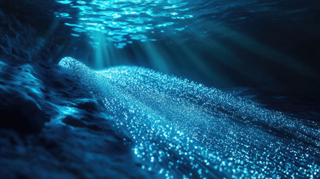 A captivating underwater scene featuring soft light rays and sparkling particles on the ocean floor, creating a serene and magical atmosphere.