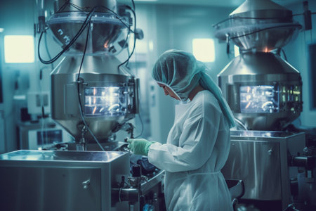 Pharmaceutical industry factory and production laboratory (color toned image; shallow DOF), vaccine production concept