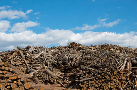 Pile of wood for combustion in biomass power plant