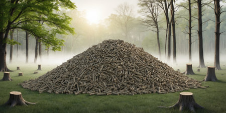 Wood pellet production impact on deforestation pellets in scene depict environmental consequences