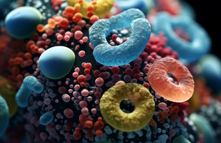 A captivating close-up reveals diverse cellular structures, showing a colorful mix of shapes and sizes. These vivid formations highlight the complexity of microscopic life.