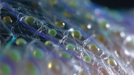 A closeup view of the onskin organprint patch showcasing a vibrant mesh of different cell types interspersed with nanofibers highlighting the precision of AGI in mimicking natural healin