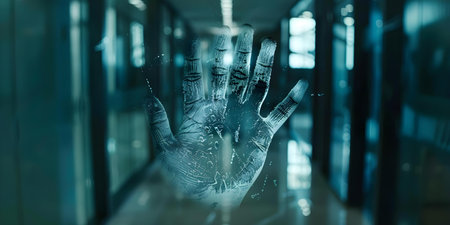Partial fingerprint on window background. Minimal abstract rime or mystery concept. Cybersecurity idea. With copy space.