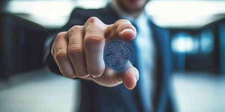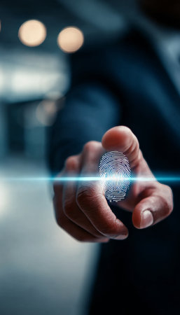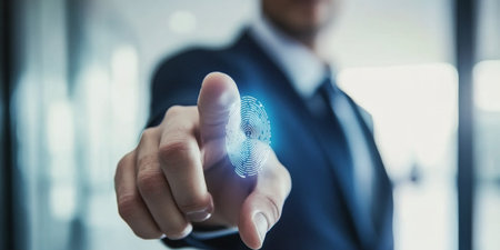 Businessman Scanning Digital Fingerprint for Secure Access and Modern Identity Verification