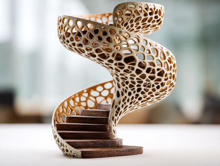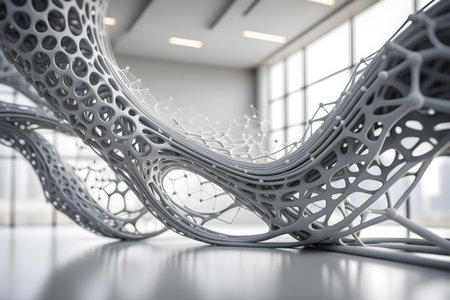 A detailed view of a complex 3D printed structure showing modern design and manufacturing methods.