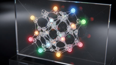 Glowing showing abstract molecular structure with colorful glowing nodes on a transparent...