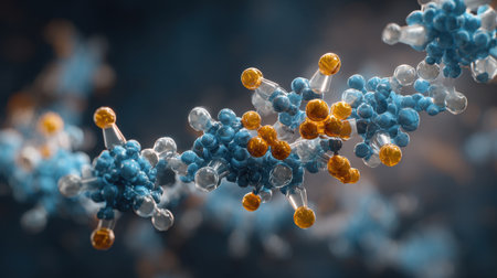 Vibrant molecular structures display intricate connections showcasing the beauty of chemistry at a microscopic level with rich colors and detail.