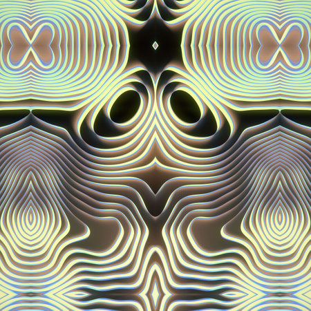 Symmetrical 3d rendering digital illustration of a colorful wavy pattern