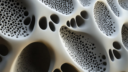 A close-up view of a white abstract surface with a pattern of circular cutouts.