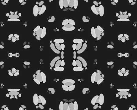 Aztec Lace Pattern. Seamless Tie Dye Ornament. Ikat Mexican Motif. Abstract Kaleidoscope Design. Black and White Monochrome Seamless Texture. Hand Drawn Aztec Lace Pattern.