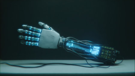 Futuristic Robotic Hand with Neural Interface Illustrating Mind-Machine Interaction Possibilities