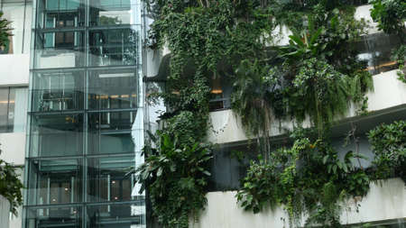 BANGKOK, THAILAND - 18 DECEMBER, 2018 The Emquartier - luxury shopping center. Design of mall in green environmentally friendly concept. Open air hanging garden on terraces and waterfall