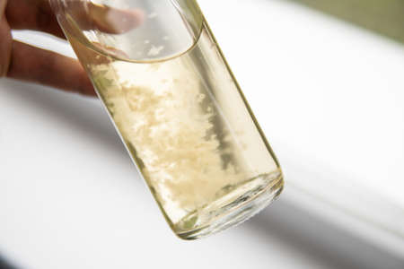 Scientific research with laboratory glass close up