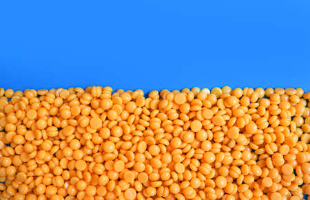 hard wax in the shape of yellow lentils over a blue background as a symbol of the ukranian flag