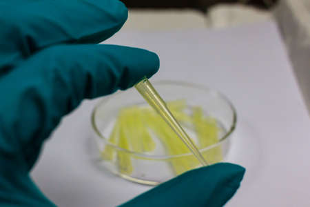 traces of plastic and microplastic in petri dish, analyzed in laboratory, study of environmental problem