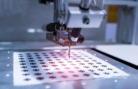 3D bioprinter ready to 3D print cells onto an electrode. Biomaterials, tissue engineering concepts.