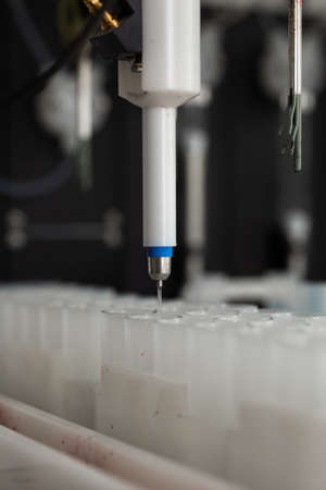 Automation in the clinical laboratory. Pipetting robot laboratory. Medicine robotics. NGS DNA diagnostics. Research and science background