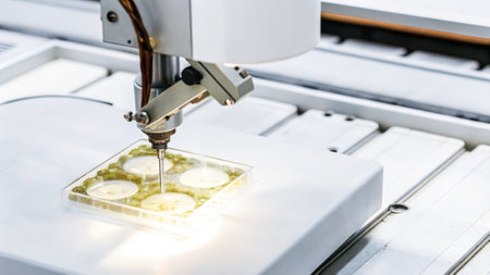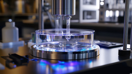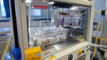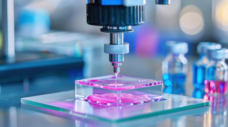 3D bioprinter ready to 3D print cells onto an electrode. Biomaterials, tissue engineering concepts.