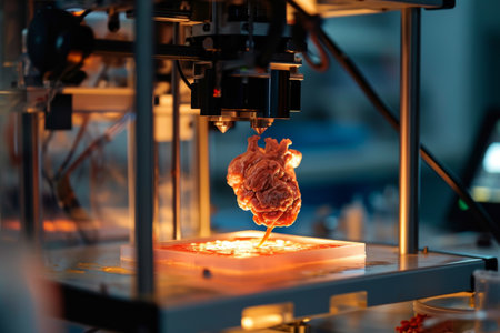 Creating artificial heart , medical 3D printing of heart model transplantation organ biological engineering, engineering bioprinting. AI Generative