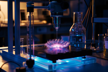 High-tech microscope capturing detailed analysis of organic material in a modern lab setting, showcasing the intersection of technology and scientific research.