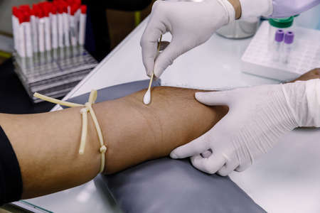 Nurse prepares the material for a blood test.Concept of health and medicine