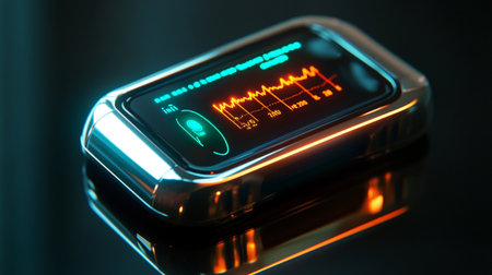 A close-up macro shot of an advanced bio-sensor device for the human body. Generative Ai