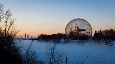 the biosphere on Île Sainte-Helène on a freezing morning, St. Lawrence River, Montreal, Quebec, Canada