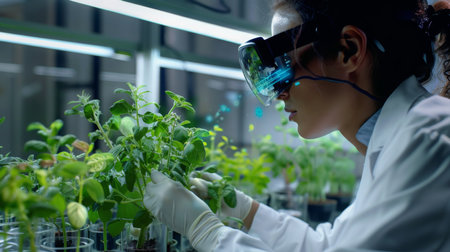 In a high-tech lab, scientists are unraveling plant growth secrets using GMOs and innovative techniques Their research focuses on boosting crop yield, disease resistance, and nutritional value through precision agriculture and controlled environments This data-driven approach optimizes plant health, promotes environmental sustainability using green technology, and holds the key to AI Generative