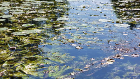 water landscape with water lily leaves pond lake