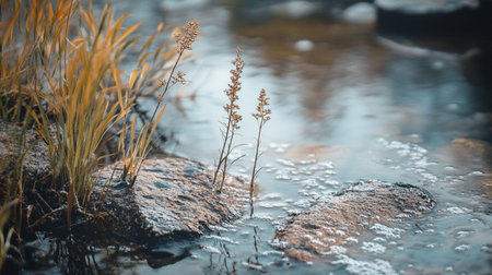 wild grass in water in nature, note shallow depth of field