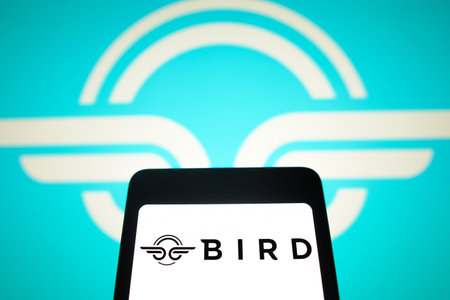 February 2, 2024, Brazil. In this photo illustration, the Bird Global, Inc. logo is displayed on a smartphone screen and in the background